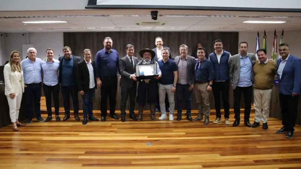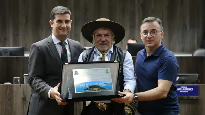 A Câmara de Vereadores fez entrega do título de Cônsul Honorário para Osmar José Fernandes que a partir de agora passa a representar oficialmente o Estado do Rio Grande do Sul em Balneário Camboriú. O título foi concedido através do Decreto Legislativo 616/2024, de autoria do vereador André Meirinho (Progressistas) aprovado pelo plenário.