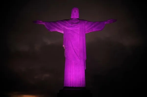 É muito comum que prédios, monumentos e construções tenham a iluminação rosa durante o Outubro Rosa.