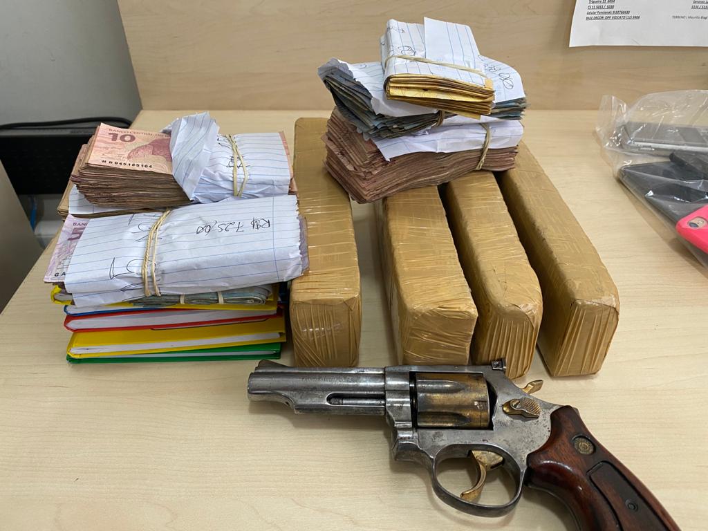 Foram cumpridos ainda quatro mandados de busca e apreensão, sendo apreendidos dinheiro, drogas e armas.