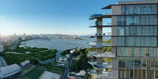 Um residencial em construção na cidade de Itajaí, Litoral de Santa Catarina, terá piscinas com face de vidro suspensas e aquecidas na varanda dos apartamentos. O município é o 6º com preços médios de imóveis mais caros do país. Um triplex na unidade, que deve ser entregue no final de 2024, custa R$ 22 milhões.