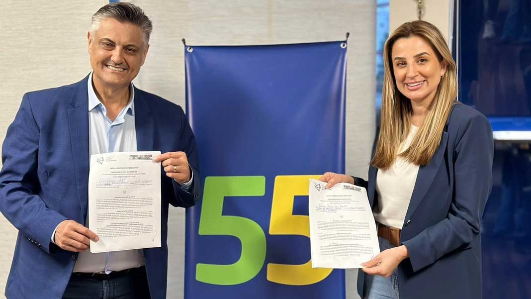 Os pré-candidatos, Juliana Pavan e Nilson Probst, formalizaram a integração do plano 55 à Agenda 2030 da ONU ao assinar nesta quinta-feira (8) a Carta Compromisso do Programa Cidades Sustentáveis (PCS).