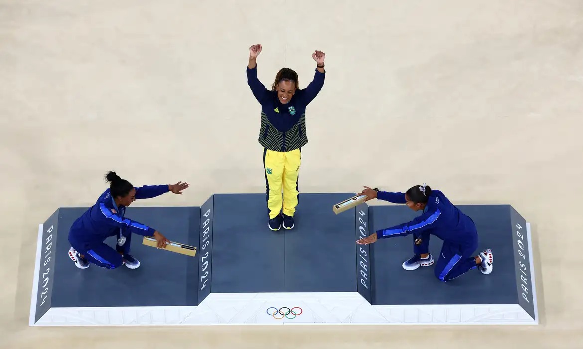 A despedida de Rebeca Andrade da Olimpíada de Paris não poderia ser melhor. Nesta segunda-feira (5), a paulista conquistou a medalha de ouro na prova de solo, alcançando seu quarto pódio na capital francesa. Foi a sexta medalha olímpica dela, que se isolou como atleta brasileira mais laureada na história do evento, superando os velejadores Robert Scheidt e Torben Grael, com quem a ginasta estava empatada.