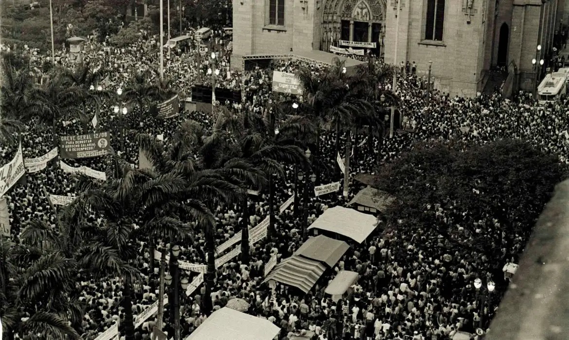 Há 40 anos, no dia 25 de janeiro de 1984, na Praça da Sé, centro da capital paulista, mais de 300 mil pessoas se reuniram durante o comício pelo voto direto para presidente da República. O evento não só deu visibilidade à campanha para a implementação do voto popular para a chefia do Poder Executivo, conhecida como ‘Diretas Já!’, como ficou marcado na história como símbolo de grande mobilização dos brasileiros, incluindo políticos, artistas, esportistas e trabalhadores de diversas categorias, contra a continuidade da ditadura civil-militar, que se estendia desde 1964. Antes do evento da Praça da Sé, os comícios para chamar a atenção dos brasileiros para o tema começaram com pouca participação popular. O volume de participantes só aumentou com o maior apoio político e com o agravamento da situação econômica, no começo de 1984.