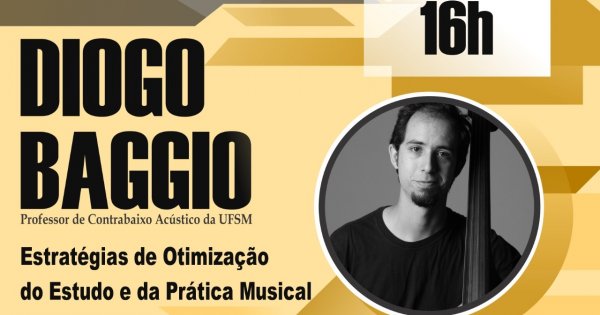 O tema: Estratégias de Otimização do Estudo e da Prática Musical, com o contrabaixista Diogo Baggio.