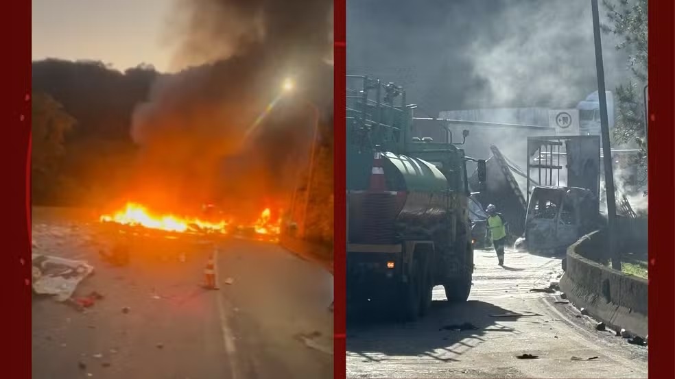 Luiz César dos Santos é empresário e afirma que viu o engavetamento acontecer. Segundo ele, a pista estava em obras e o motorista de uma das carretas perdeu o controle da direção em uma curva, bateu em outra carreta e na sequência atingiu a traseira da van, que levava crianças. O veículo pegou fogo na sequência.