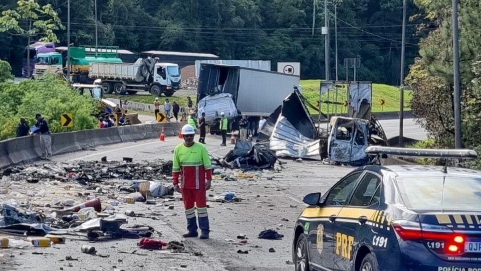Segundo informações preliminares da Polícia Rodoviária Federal (PRF), o caminhoneiro que iniciou o engavetamento morreu e ao menos 14 pessoas ficaram feridas. O bloqueio no trânsito inicia no km 662, em frente à PRF de Tijucas do Sul. Equipes da PRF, da concessionária Arteris Litoral Sul e do Corpo de Bombeiros estão atuando no local. As causas do acidente estão sendo investigadas.