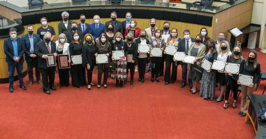 A Assembleia Legislativa promoveu na noite desta terça-feira (21) sessão especial em homenagem ao Laboratório Central de Saúde Pública (Lacen). O órgão completou 70 anos de fundação em 2021. A programação foi uma iniciativa do deputado Dr. Vicente Caropreso (PSDB) e aconteceu no plenário Deputado Osni Régis.