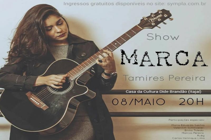 A compositora e cantora Tamires Pereira apresenta no domingo (08), às 20h, no auditório da Casa da Cultura Dide Brandão, o seu primeiro show autoral intitulado “Marca”. O espetáculo tem entrada franca, mas os ingressos já estão esgotados. No dia 22 de maio, a artista reapresenta o mesmo trabalho na Casa da Cultura.