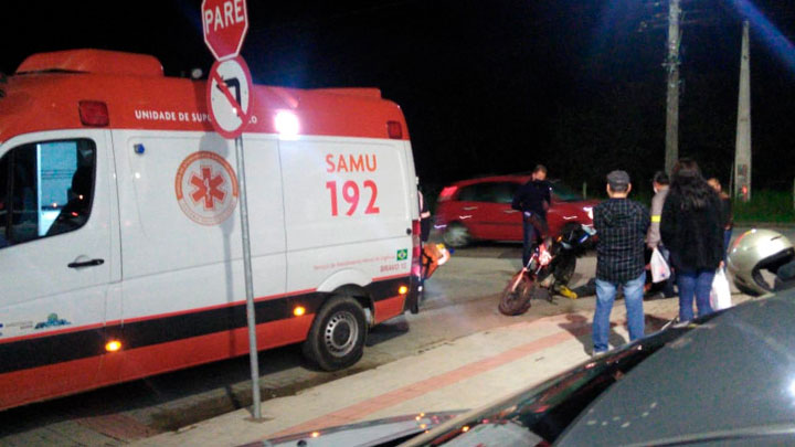 Posteriormente, os policiais conversaram com a mulher de 28 anos que relatou a eles que transitava com sua motoneta Honda Biz pela Av. Jacarandá, sentido centro, quando no cruzamento em frente ao supermercado Koch um veículo Ford EcoSport de cor branca avançou sua preferencial, vindo a colidir com sua motocicleta, fazendo com que a mesma caísse e sofresse lesões leves no seu pé direito. O Serviço de Atendimento Móvel de Urgência (Samu) foi acionado no local e prestou socorro à vítima. Seu estado de saúde não foi informado.