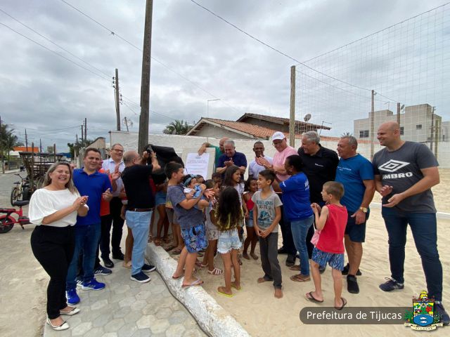Nesta sexta-feira (10), a comunidade de Tijucas celebrou a entrega da nova Quadra Esportiva na rua Alvina Simas Reis, popularmente conhecida como: “Campinho de Futebol do Casarão”. O evento contou com a presença do juiz da comarca de Tijucas, Dr. José Adilson Bittencourt Júnior, além de vereadores e secretários locais. O vereador em exercício Edinho, que reside na rua, falou em nome da comunidade agradecendo pela entrega da obra.